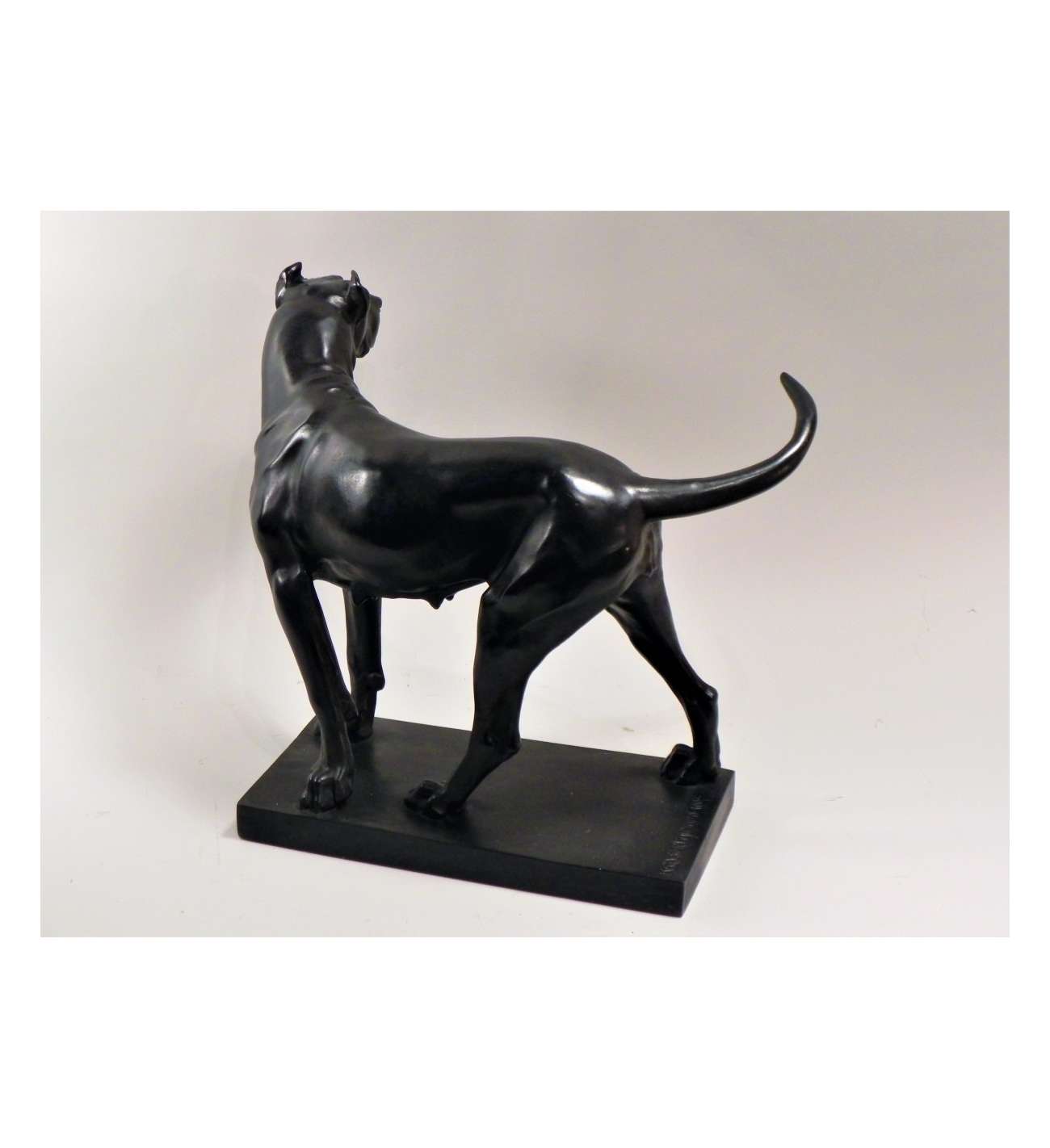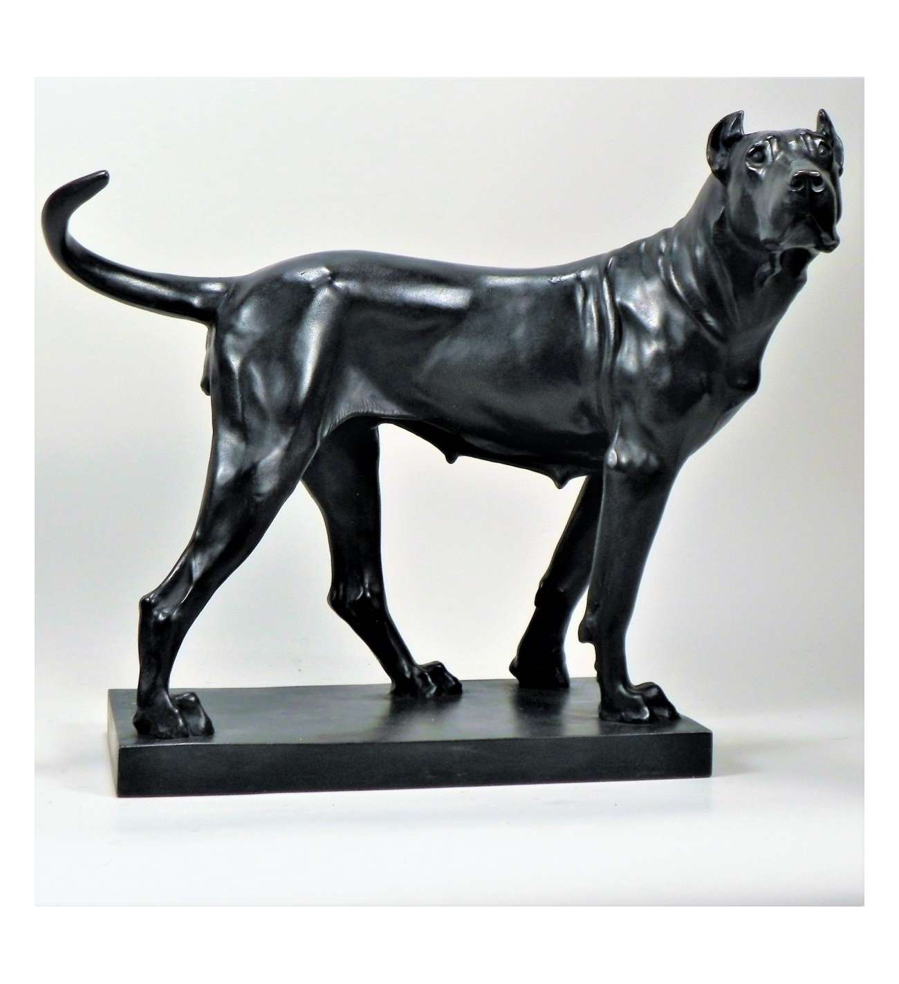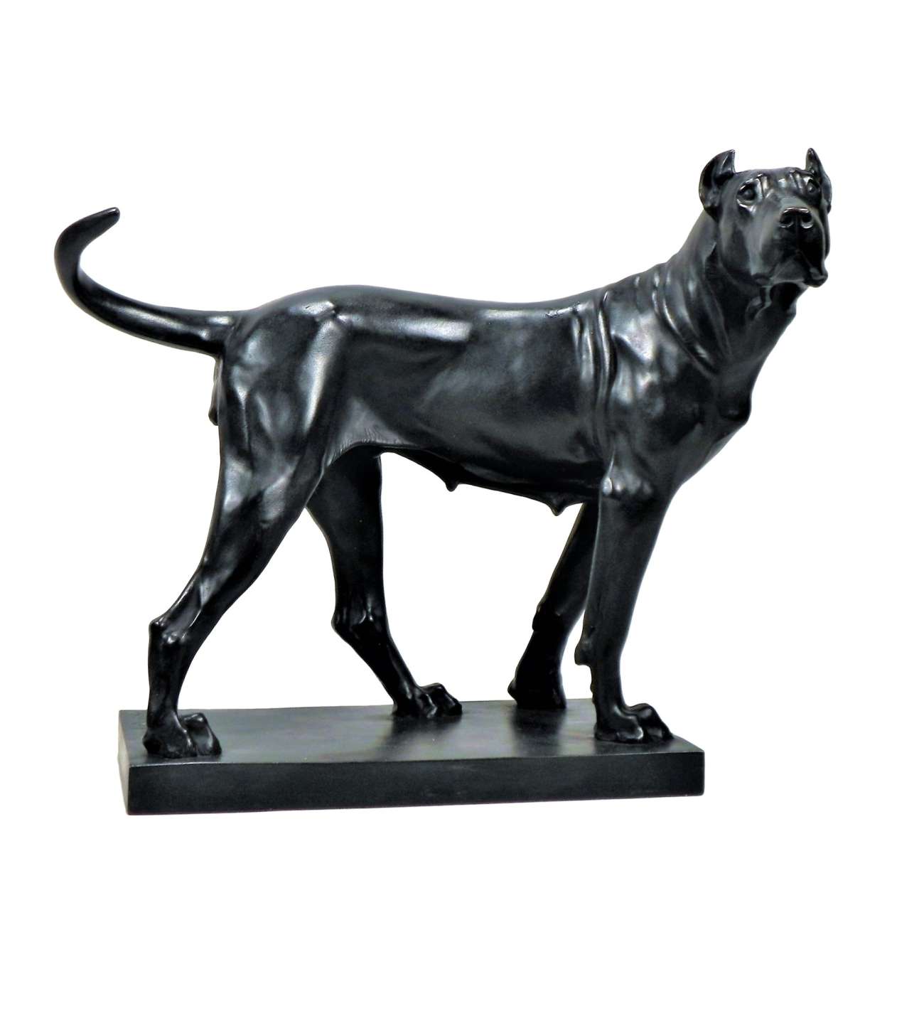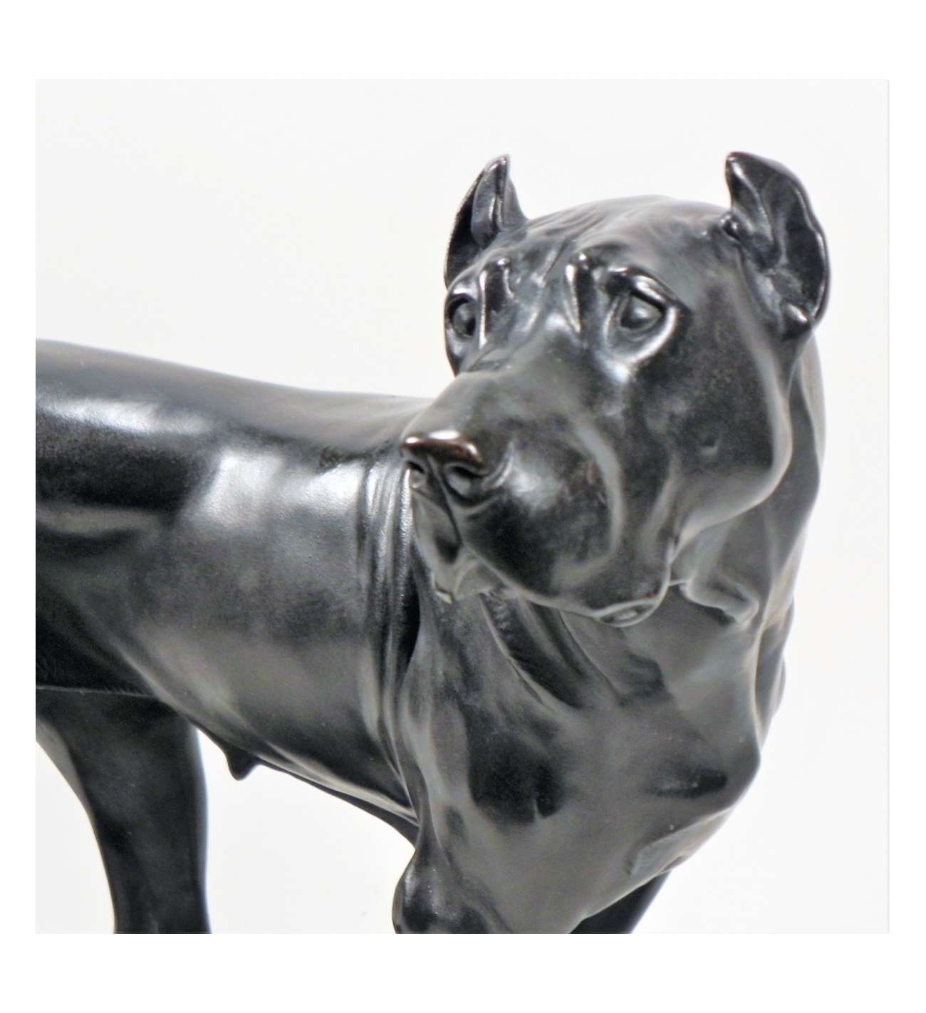 This animal bronze sculpture depicts a noble Great Dane, created by the German sculptor Gustav Reißmann. Originally designed in 1907, this work showcases the artist's anatomical expertise at the beginning of the 20th century. The muscular rendering and alert stance of the dog illustrate a subtle transition toward the Modern Art style, emphasizing pure lines and the animal's powerful physical presence.