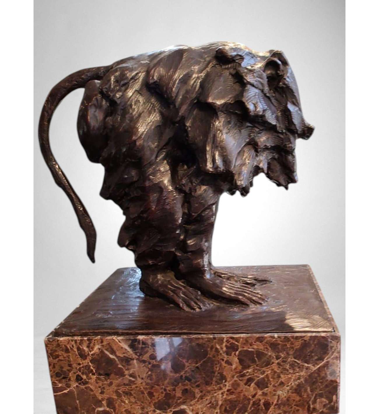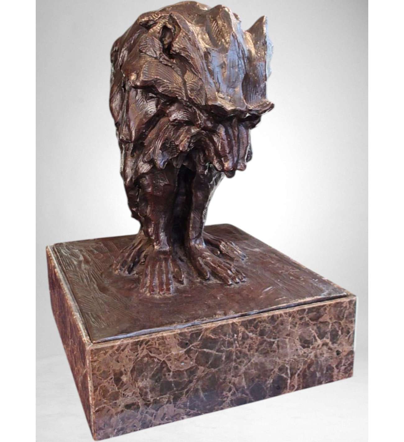 Mounted on a custom-cut marble base of 10 cm in height, the sculpture is elegantly presented while remaining grounded and visually coherent with its subject’s monumental bearing.