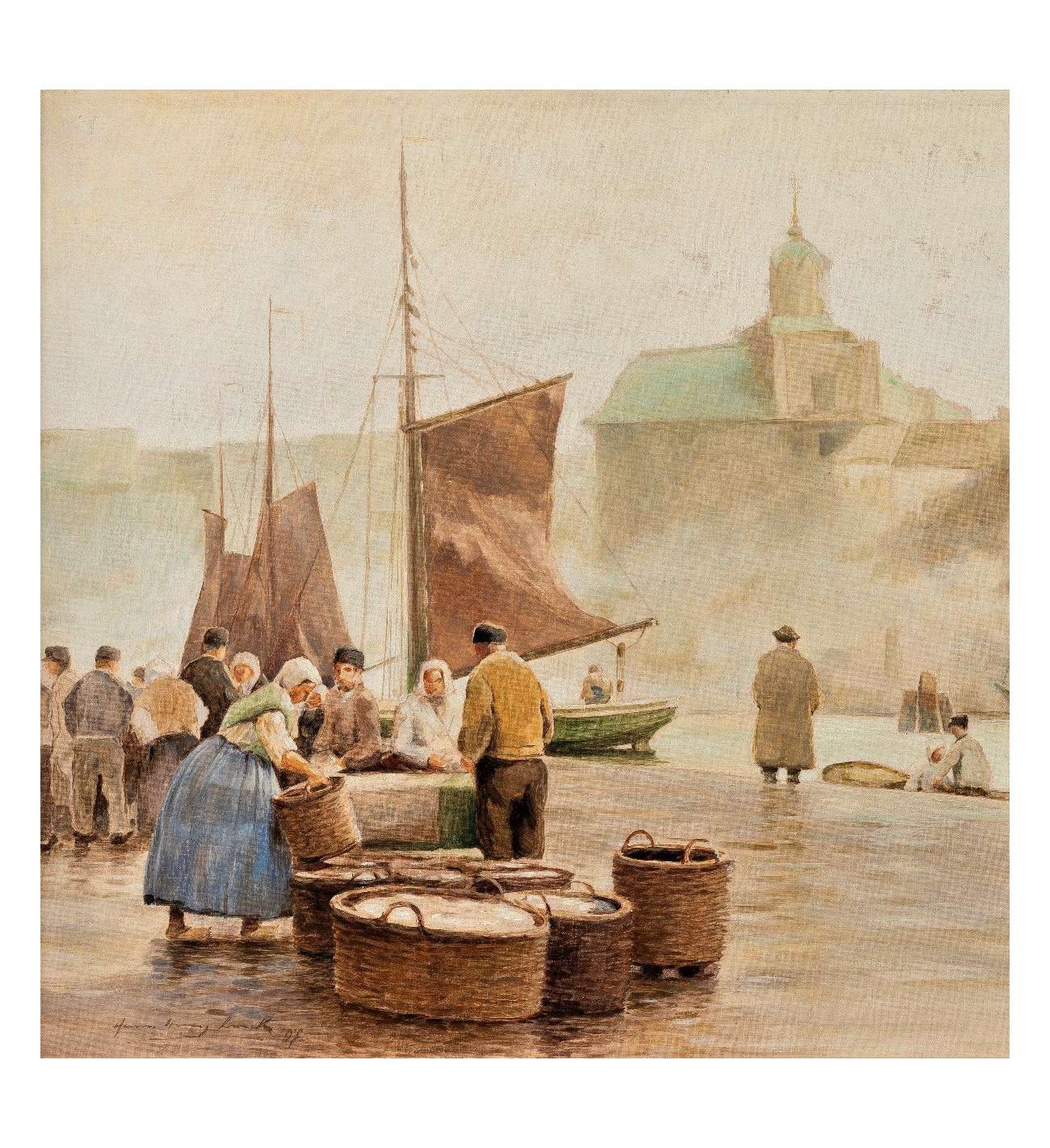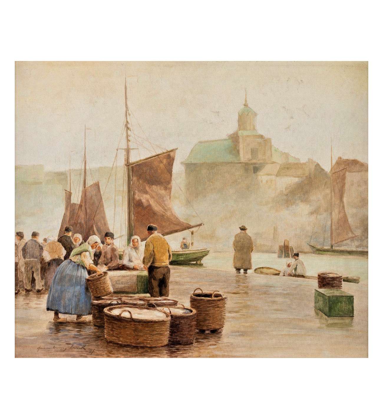vismarkt in de haven ondertekende Hans Heinz Luck DF.